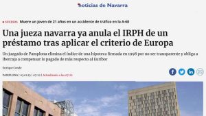 Diario de noticias destaca la anulación del IRPH en una hipoteca en Navarra a favor de una clienta de Bufete Iribarren Abogados.